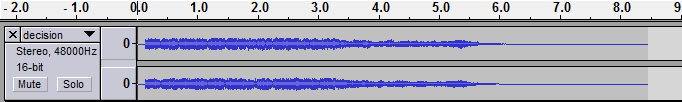 This time I don't recommend deleting all the INI files. What the INI does (from what I can figure) is pretty much tell the game at what point in the song to loop from. I recommend that you delete an individual INI on a per song basis. Let's choose a song to change. How about the one titled 'decision?' I'm picking this song so I can go into a long boring technical explanation behind one of the reasons why I said to use Audacity. When you see the waveform of 'decision' you should notice that it is longer than eight total seconds.