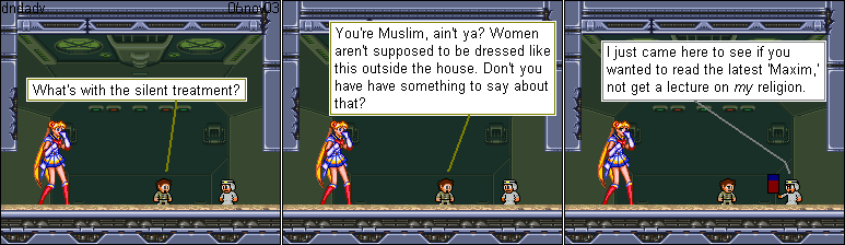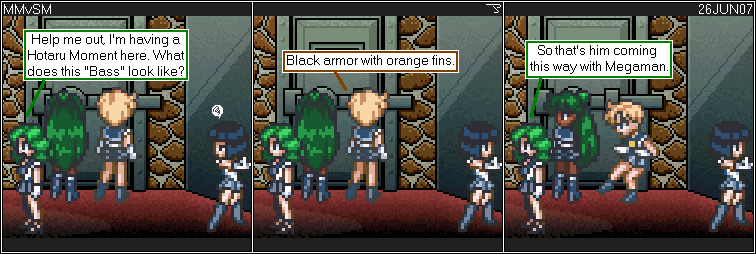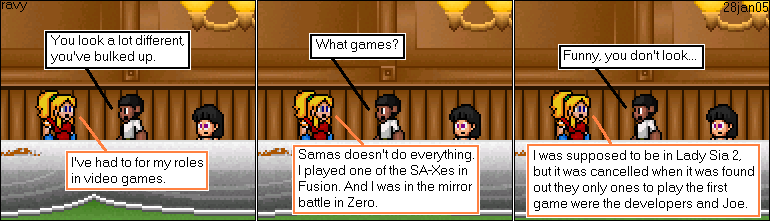 | (insert videos here) Okay, so what the hell does an alternate music track have to do with an Anime Convention? I'll get to it. There were several goals I set up for myself: First was to use songs of the same styling. What I mean by this is go play Megaman 9. Capcom used the Megaman 2 Stage Start in a game that uses the same feel as Megaman 6. I can hear the difference. Second was to not use the most obvious songs. Like Toadman for Sichte's stage. Third was to be able to justify the use of the song. Not just because I liked it. (actually insert videos here) As you can see, I epically failed miserably. Yes, I wound up using songs from all across the Megaman universe. From Complete Works, Powered Up, Arcade, Maverick Hunter X, to name a few. After about a day of trying to find a CW replacement for Replay Grolla, I gave up and went with Zero's Sacrifice from MH X. I discovered It really didn't matter if the styles didn't match, as long as it sounded close enough. (I admit to being a little too anal about such things, like safe sex.) So after that fateful decision, the whole thing came together rather quickly. Except for Talk Tears. I had forgotten about it until I did the last play through. CRAP! I could just leave it, but that isn't my style. So I go back into the Megaman music folder. By about this time I had heard all these songs several dozen times and was sick of them. I'm tired, cranky, and needed to make a call on the porcelain phone. When I got back, playing through a random happen stance of random shuffling in Windows Media Player was Alia and Gate from MMX6. "Heh, That'll do." Admittedly, I did use songs that I would have to contort myself into pretzel to justify. Like using Chargeman in Merkle's Stage. I could spend at least another 20 paragraphs comparing the similarities in attacks, or I can simply say, It's my favourite song from MM5, and I was desperate not to use Skullman or Woodman. One thing I was trying to do for at least the regular stages was to use a song from Megaman One through Eight. I do have the soundtracks for Nine and Ten, but I don't find them interesting, and hey, Splash Woman is just too damn obvious. (Yes, I did use Toadman for Sichte's stage.) Also, I actually used Geminiman for the Anime Convention, not Frostman Demo. Oh yeah, The Anime Convention, what does any of this have to do with the Anime Convention? Darn, ran out of time for this week. |